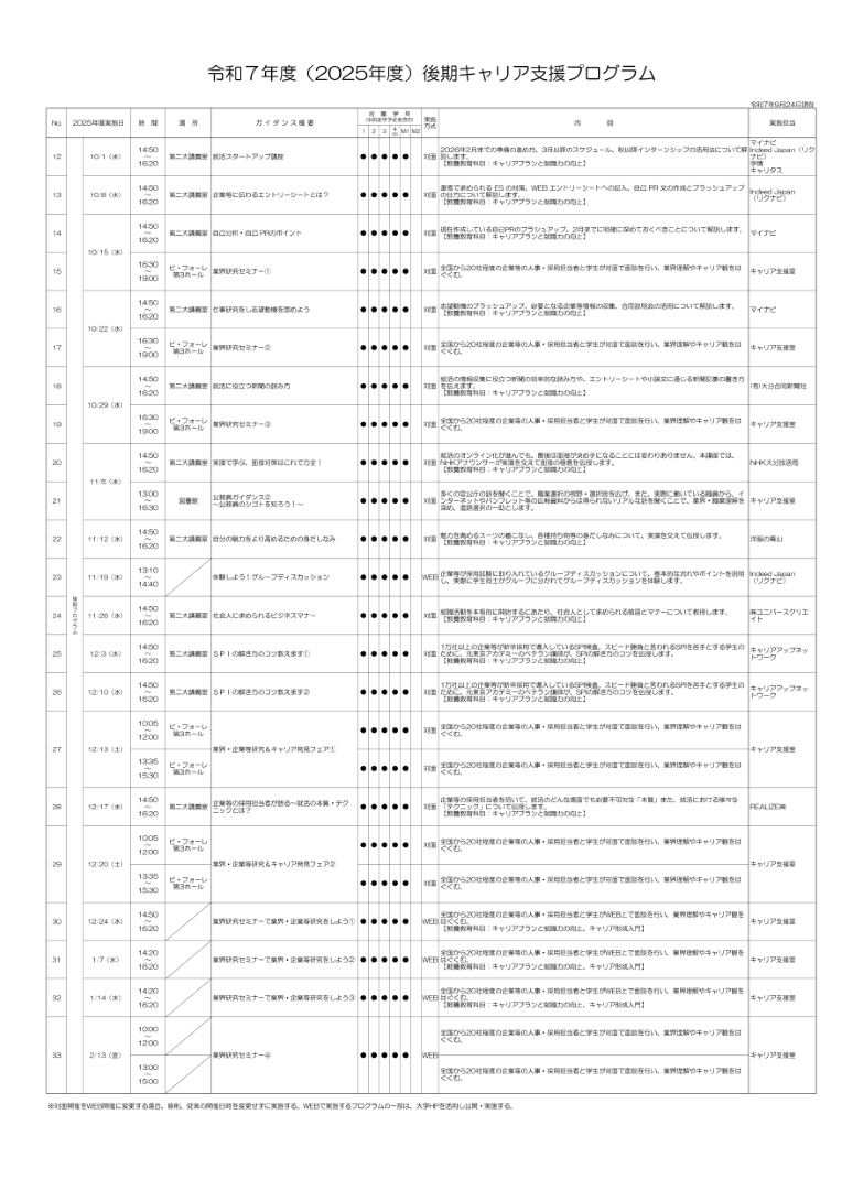 【2025年度 キャリア支援プログラム一覧(予定)】