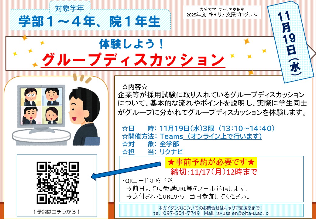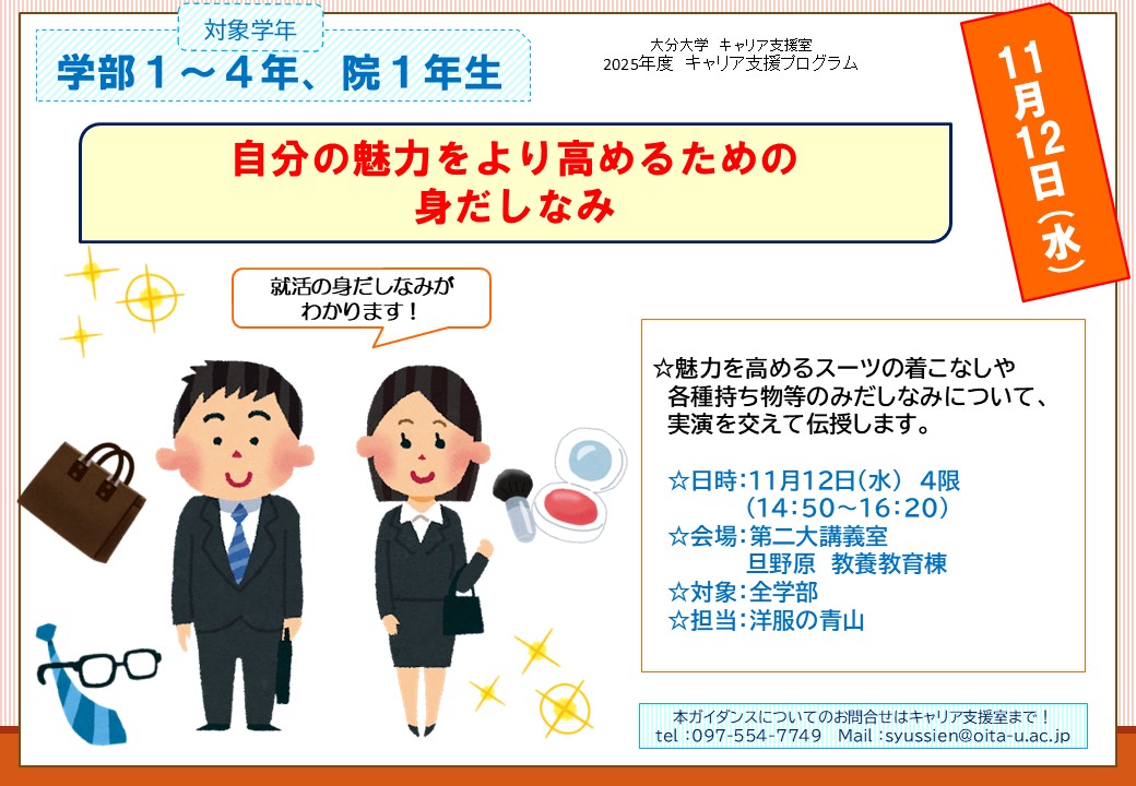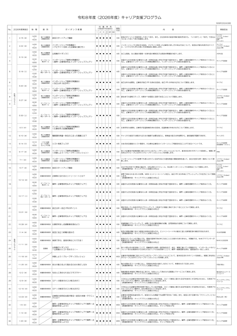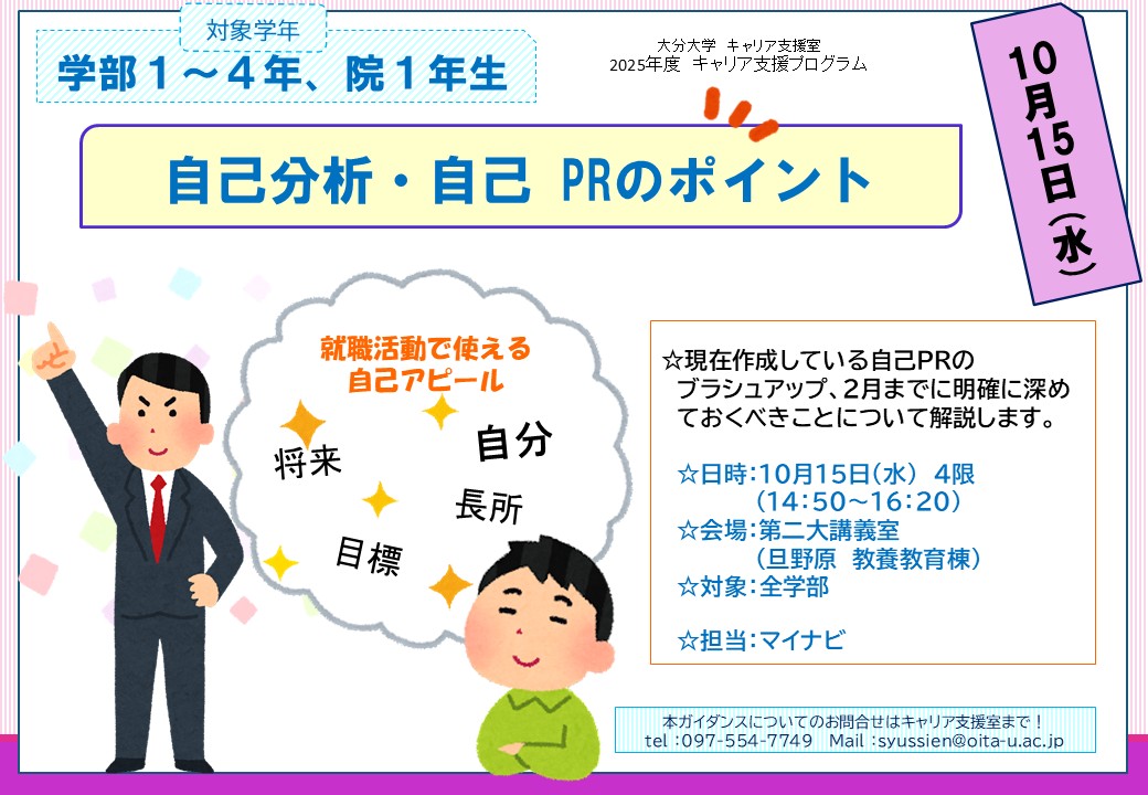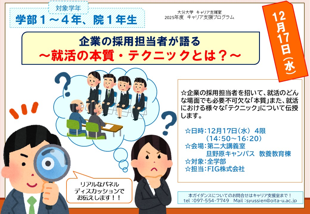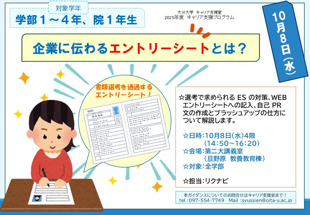 大分大学では,就職活動期に向けたキャリア支援プログラムを,年間を通じて実施しています。
