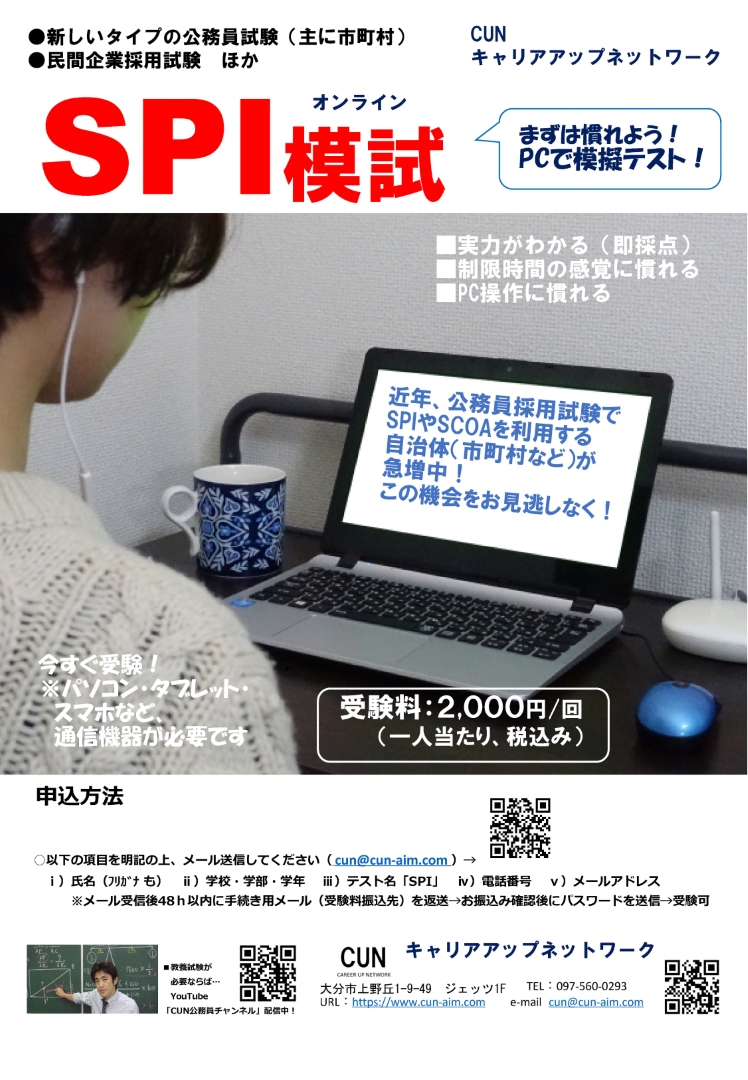 CUN SPIオンライン模試2025 (詳細はポスター画像をご確認ください) |