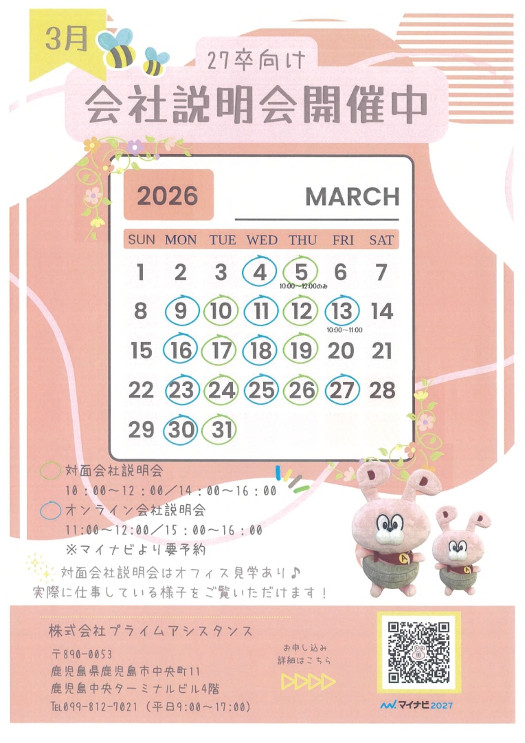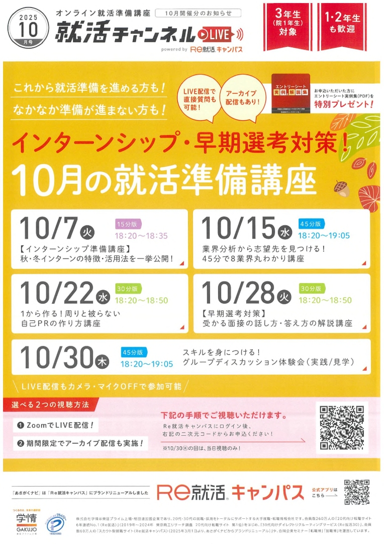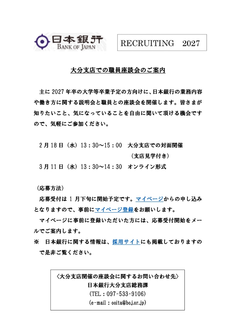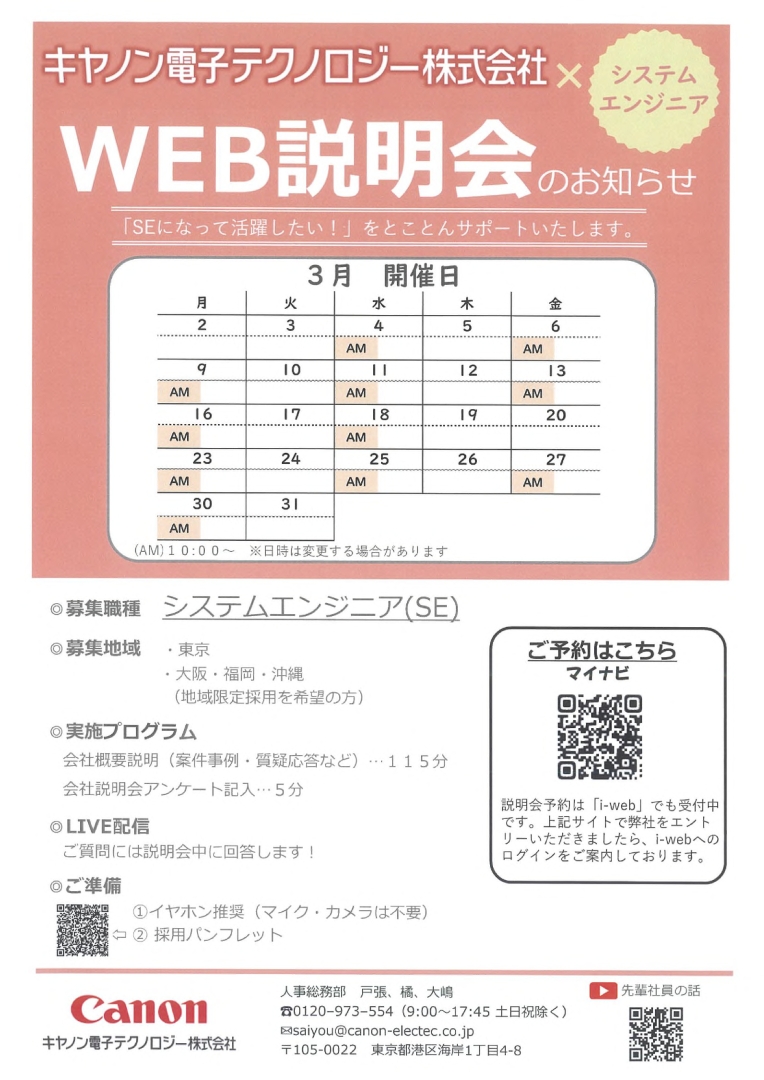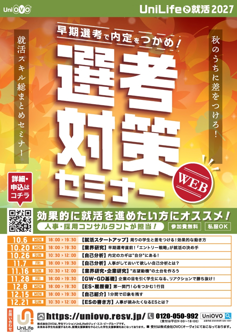 学内で開催される説明会や選考(筆記,面接)は,【こちら】