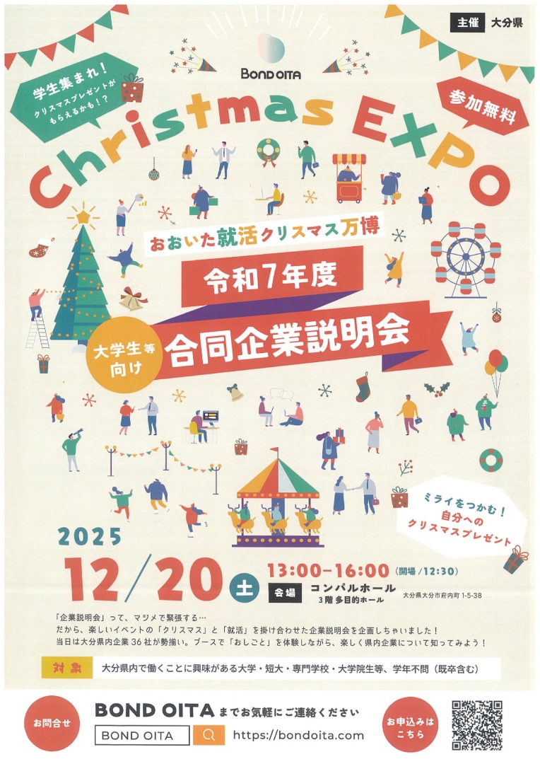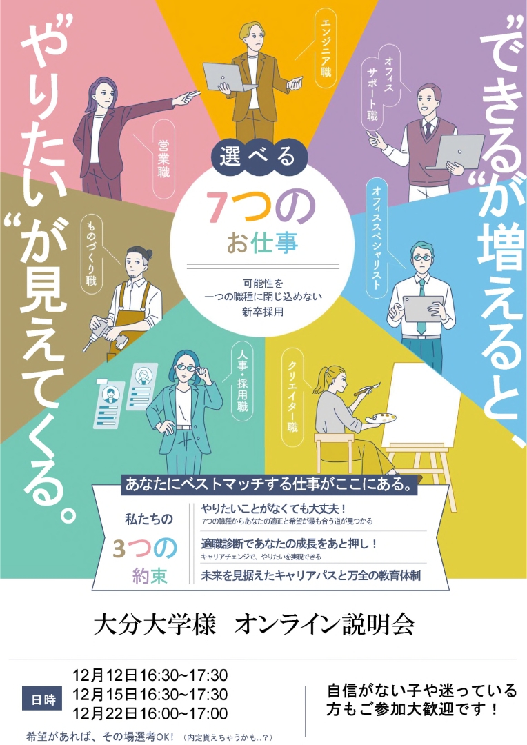 大分県庁ジョブセミナー…12/25(12/15〆) (詳細はポスター画像をご確認ください) |