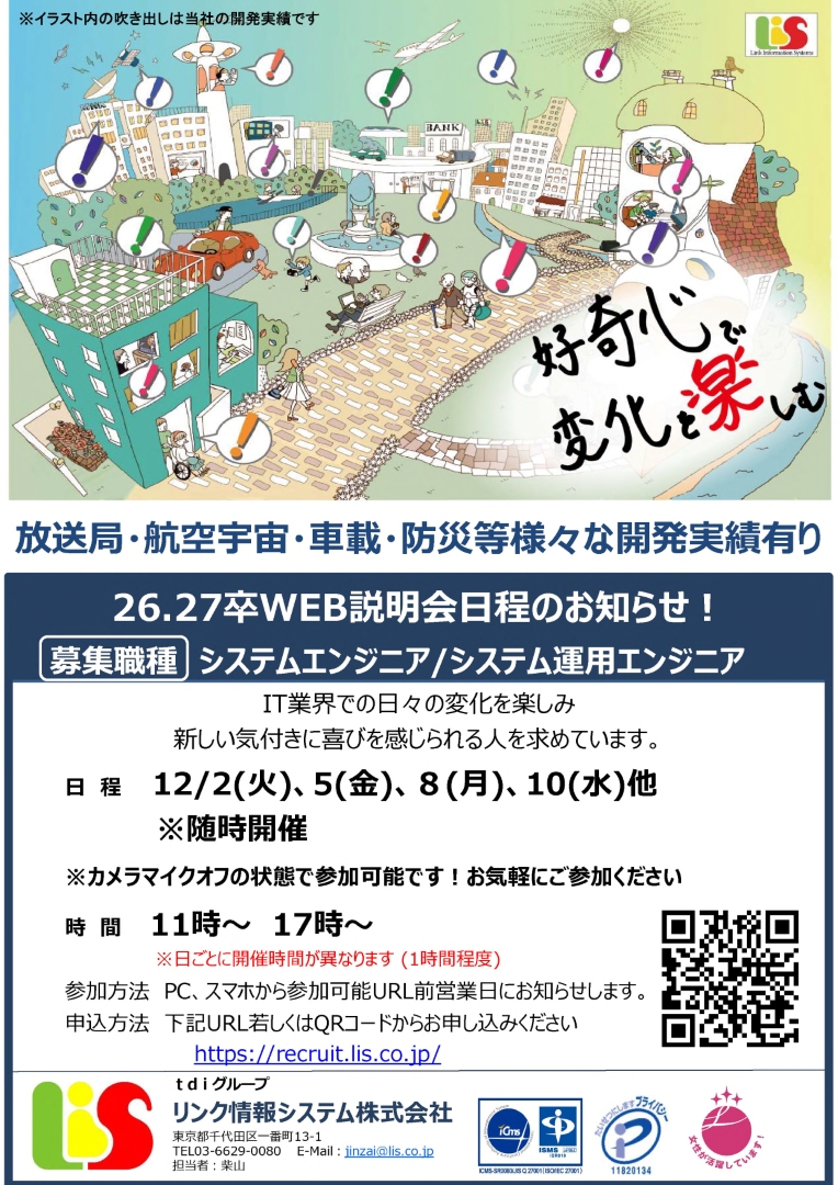 WEB説明会 リンク情報システム…~12/10 (詳細はポスター画像をご確認ください) |