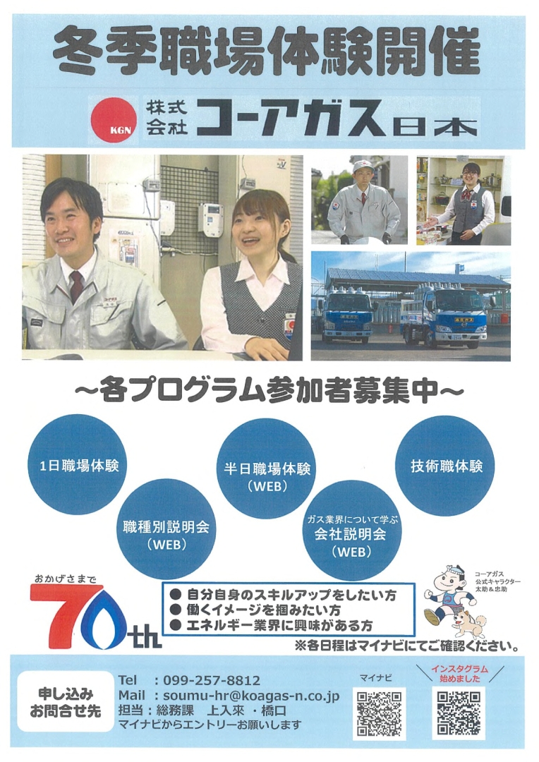 株式会社コーアガス日本 冬季職場体験 (詳細はポスター画像をご確認ください) |