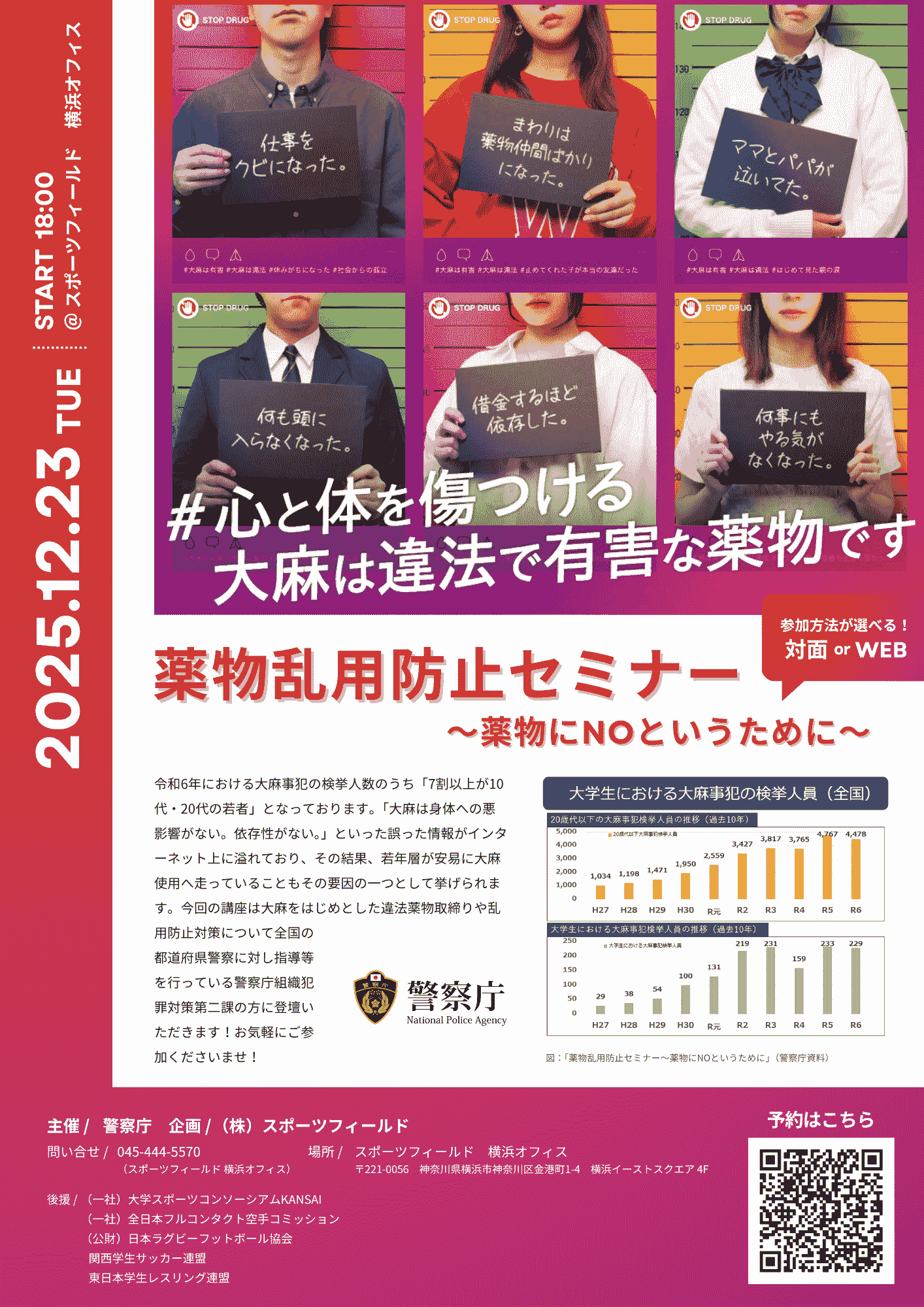 薬物乱用防止セミナー…12/23 (詳細はポスター画像をご確認ください) |