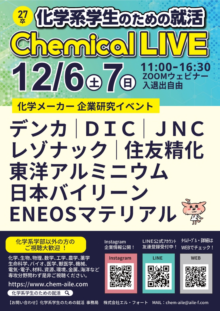 Chemical LIVE…12/6・7 (詳細はポスター画像をご確認ください) |