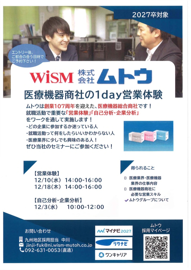 株式会社ムトウ 1day営業体験…12/10・18 (詳細はポスター画像をご確認ください) |