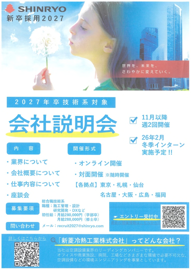 (技術系)SHINRYO 会社説明会 (詳細はポスター画像をご確認ください) |