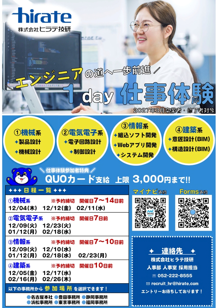 ヒラテ技研 1day仕事体験…~2/26 (詳細はポスター画像をご確認ください) |