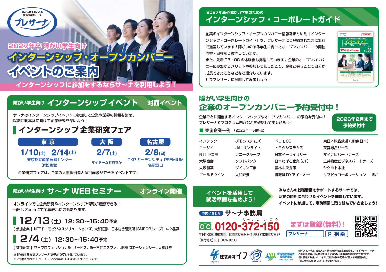 サ~ナ インターンシップ企業研究フェア WEBセミナー…~2/14 (詳細はポスター画像をご確認ください) |