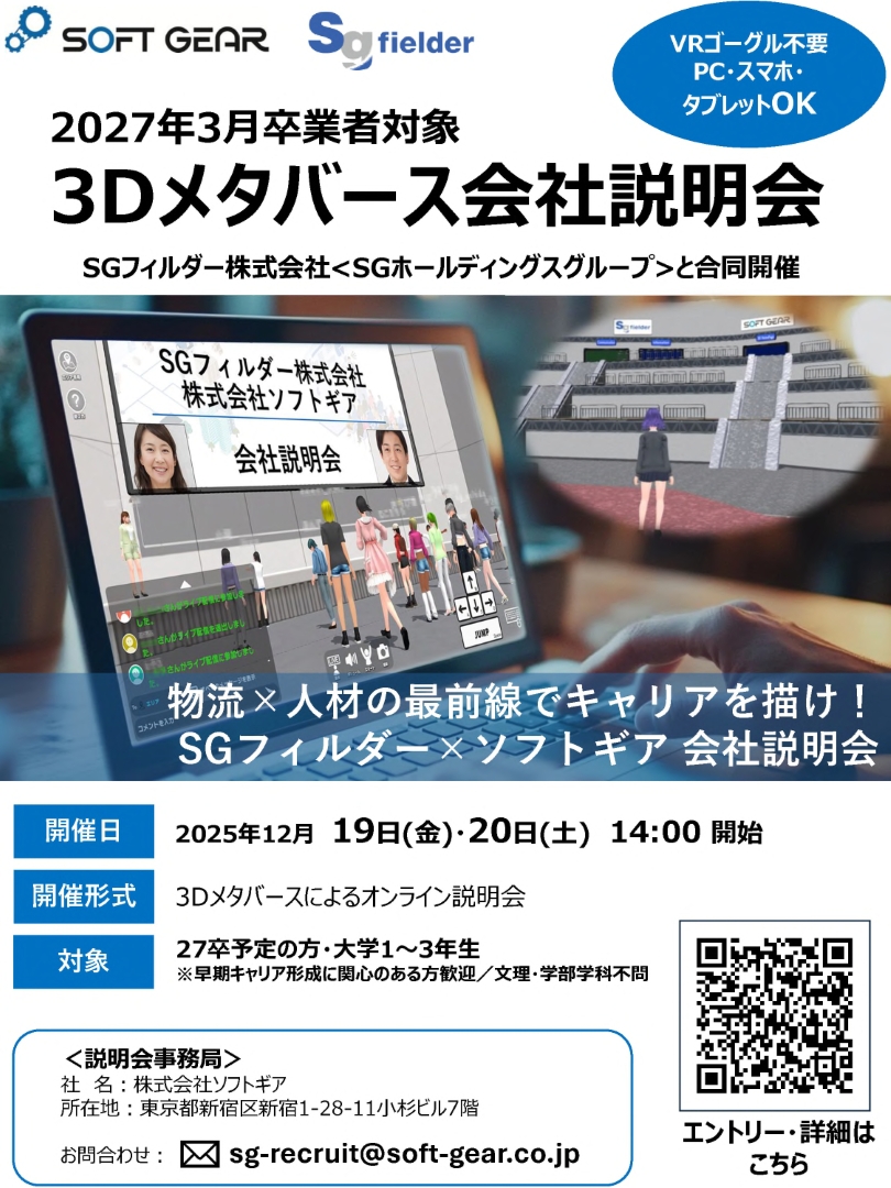 3EDメタバース会社説明会 株式会社ソフトギア…12/19・20 (詳細はポスター画像をご確認ください) |