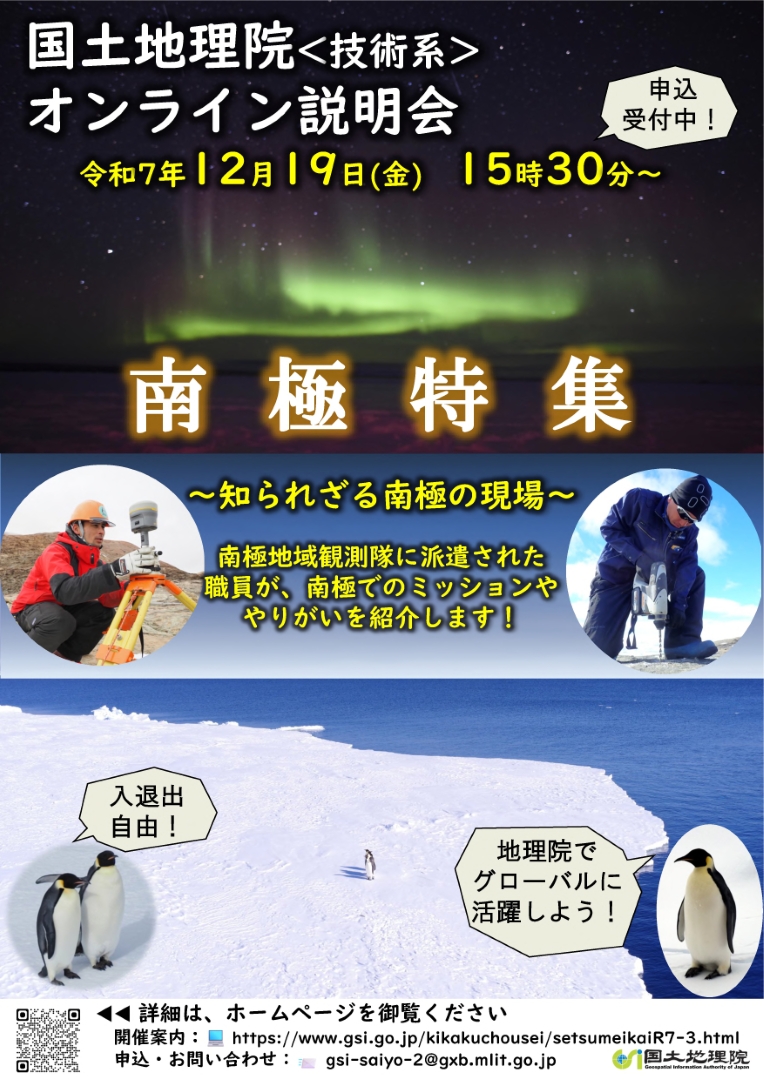 (技術向)国土地理院 オンライン説明会…12/19 (詳細はポスター画像をご確認ください) |