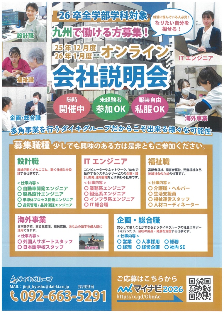ダイキグループ オンライン会社説明会 (詳細はポスター画像をご確認ください) |