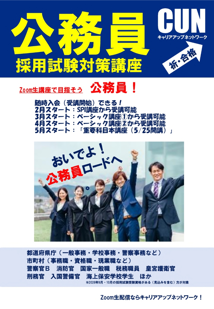 CUN 公務員採用試験対策講座 (詳細はポスター画像をご確認ください) |