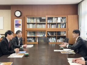 大分県出身の後藤翔太参議院議員が来学されました。尾田史郎 理事らとともに、国立大学法人及び本学の現況について説明し、意見交換を行いました。その後、減災・復興デザイン教育研究センターやB-Coreなど、本学の特色ある施設等を紹介しました。