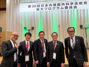 12/11(木)~12/13(土)に、横浜市にて開催された、第38回日本内視鏡外科学会総会に招待されました。30周年記念式典では、名誉理事長として、「本邦における内視鏡外科の創成期〜学会設立までのあゆみ」と題し、講演を行いました。また、消化器内視鏡外科推進連絡会では、オリンパス株式会社 竹内康雄 取締役 代表執行役会長らと意見交換を行いました。その他、理事会、社員総会、拡大プログラム委員会、タイ内視鏡外科 技術認定制度ミーティング等に出席し、日本内視鏡外科学会歴代会長らと意見交換を行いました。