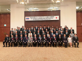 本学のグローバル化を推進するための海外における教育研究連携の拠点として、タイ王国のマヒドン大学内に、平成27年8月に開設した、本学初となる海外事務所「大分大学バンコクオフィス」の設立10周年記念式典、祝賀会を挙行しました。来賓として、ウドム・カチントン 元マヒドン大学長ほかタイ王国関係者、足立信也 大分市長、俵幸嗣 文部科学省研究振興局大学研究基盤整備課長、岡敬二AMETS常務理事、東九州メディカルバレー構想企業関係者らを迎え、本学役員や教職員とともに、式典を挙行できたことを大変嬉しく思います。これからもバンコクオフィスが、海外事業展開の拠点となることと確信しています。